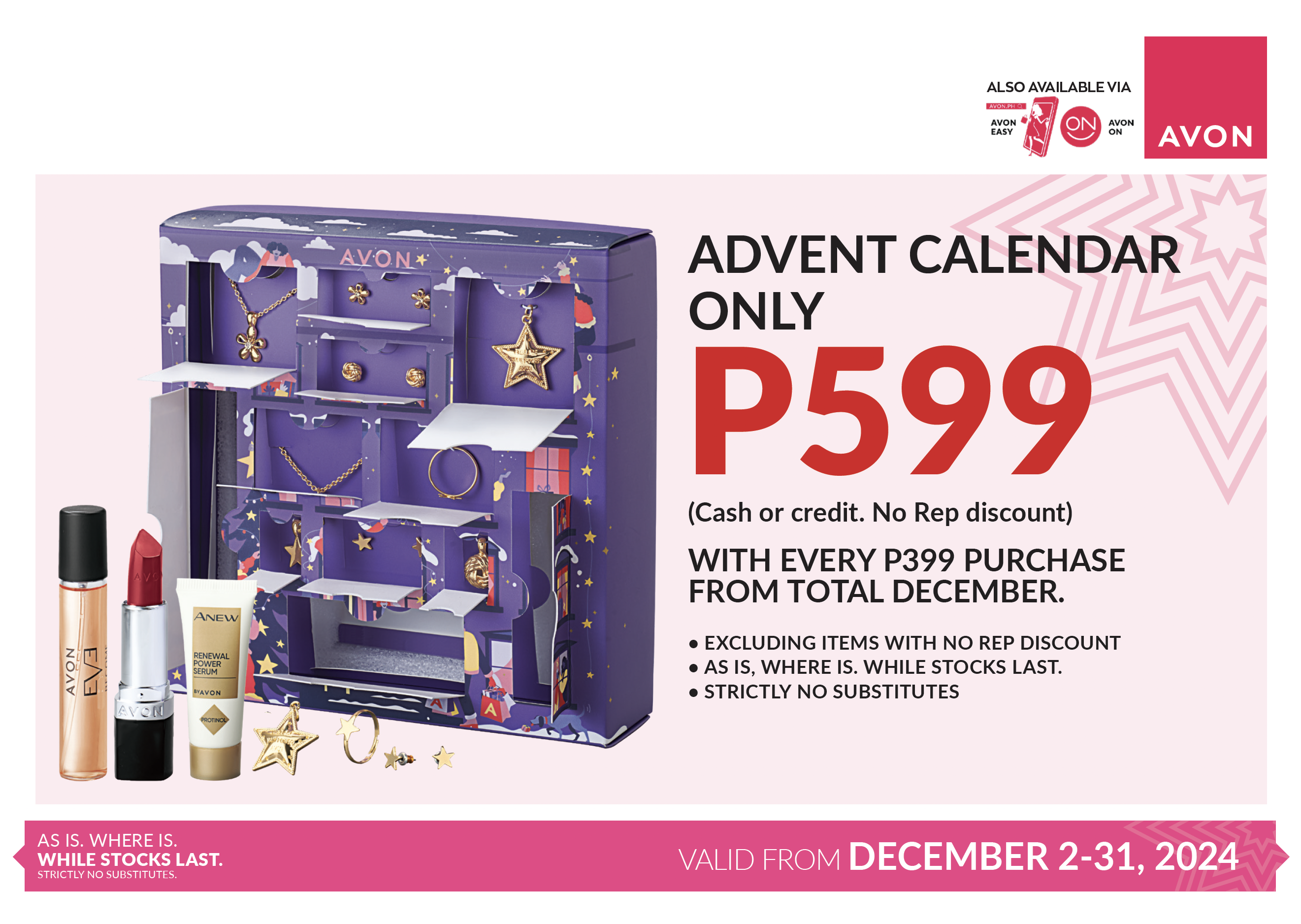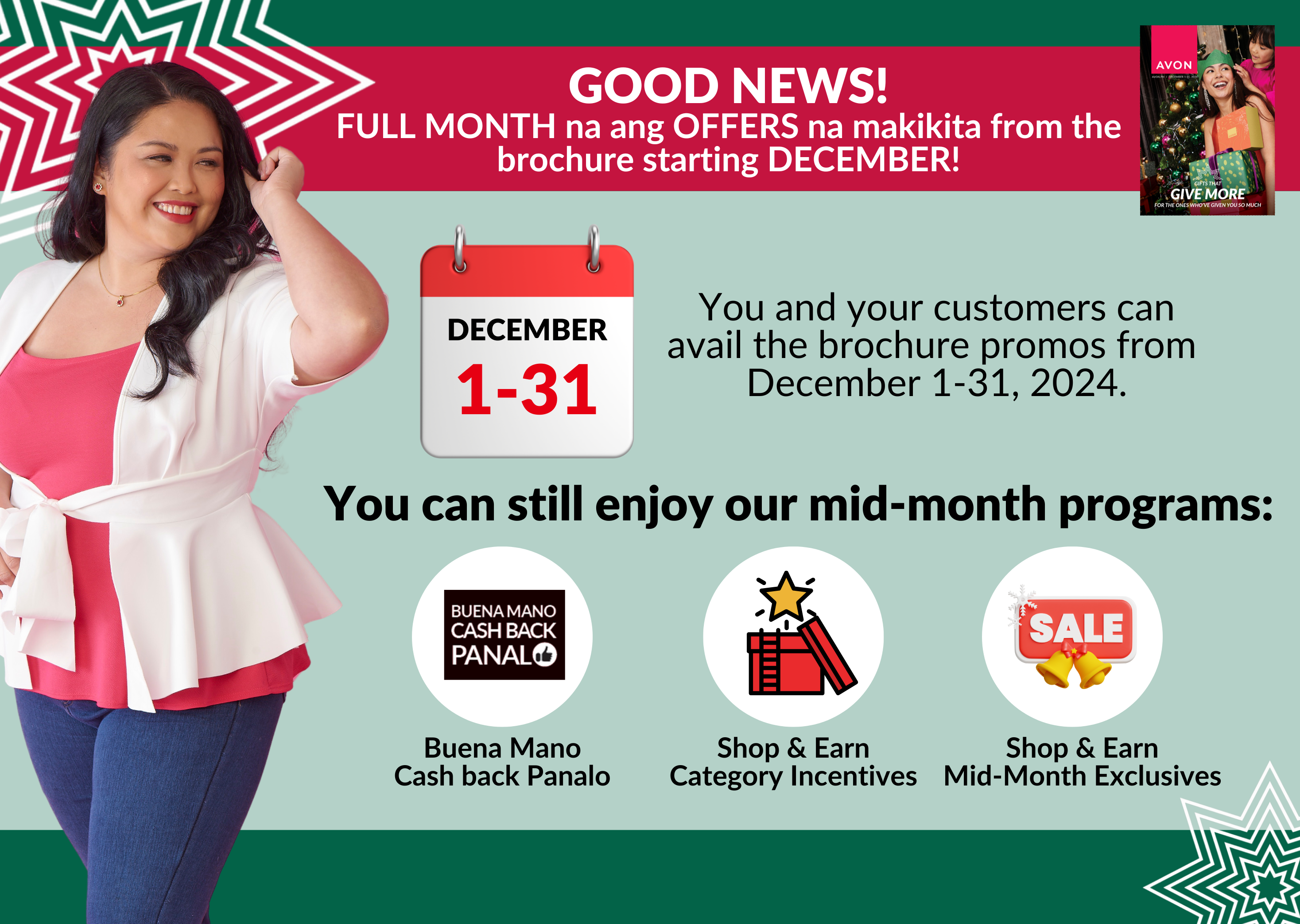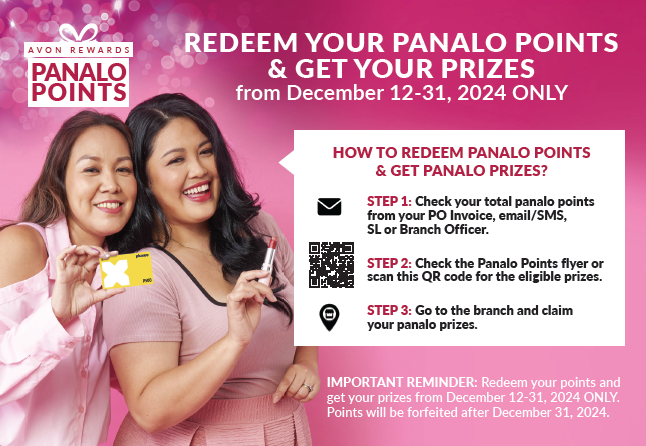 Manuod ng Pamasko Power Facebook live sa Avon Philippines page or invite them to our branches to join our watch parties.
