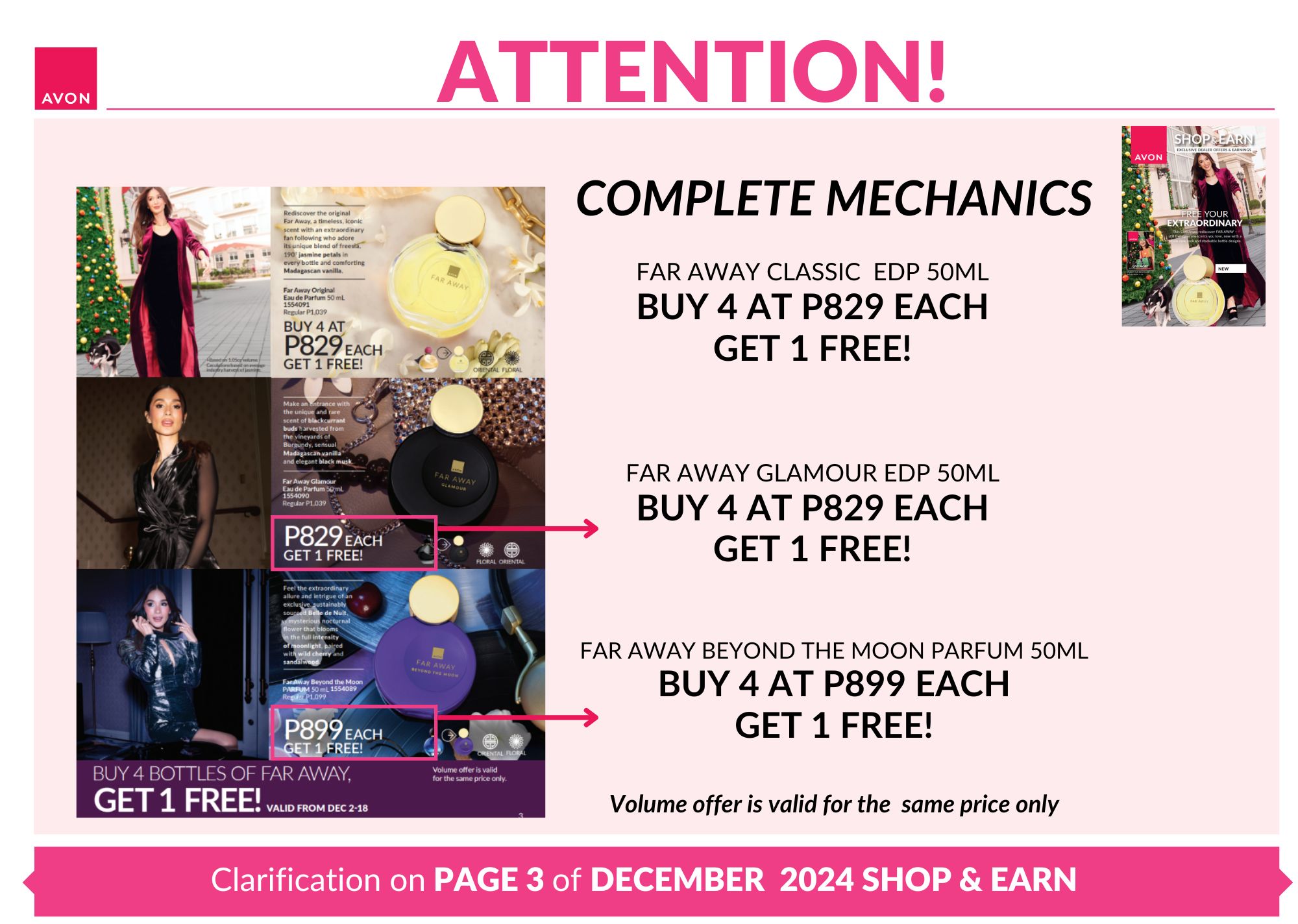 2. Do the Spray, Slay Walk Away Movement and post in your Facebook, Instagram and/or TikTok account, tag Avon PH accounts and use the official hashtags: #AvonPH #AvonFarAway #AvonBranchName (Sample: #AvonTaft). Post from November 28-December 31, 2024.