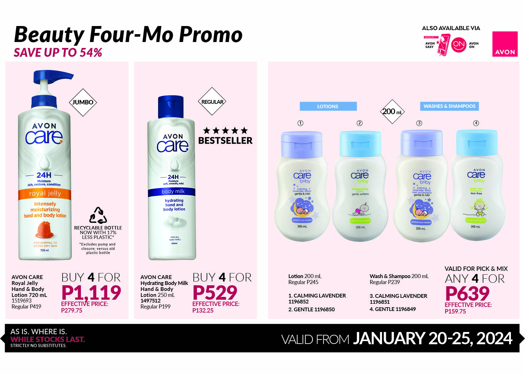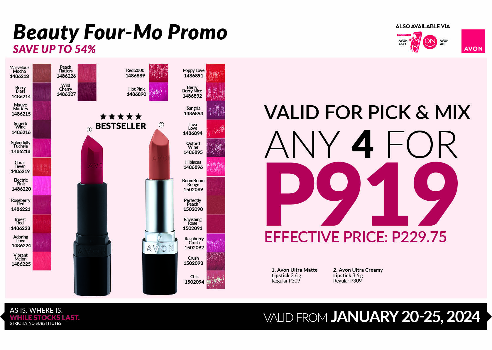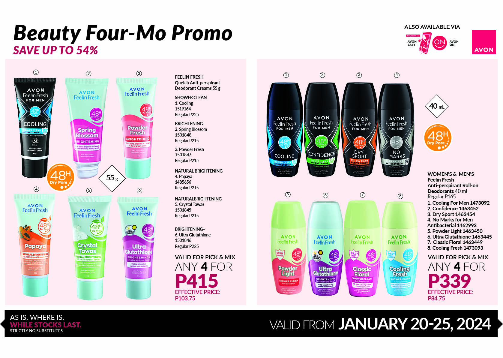 Available for purchase in the branch or via Avon ON/EASY!