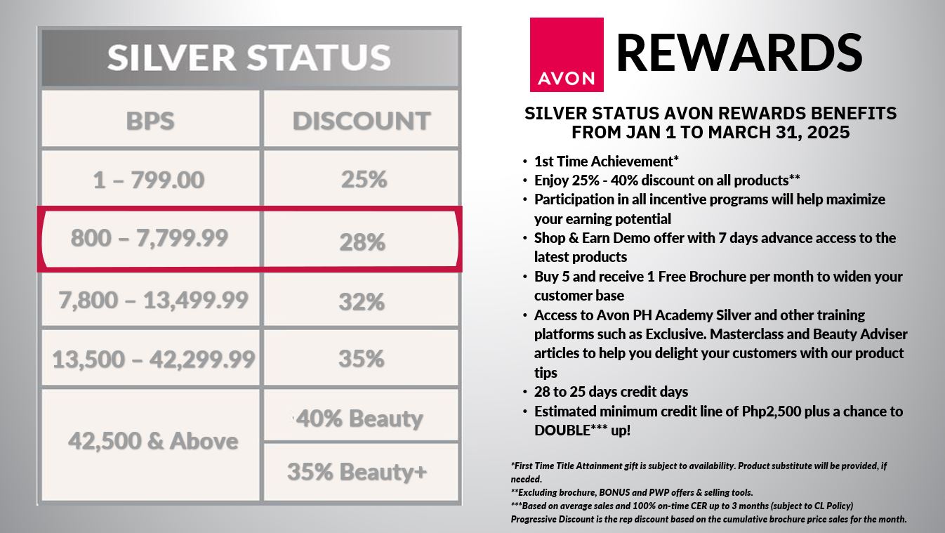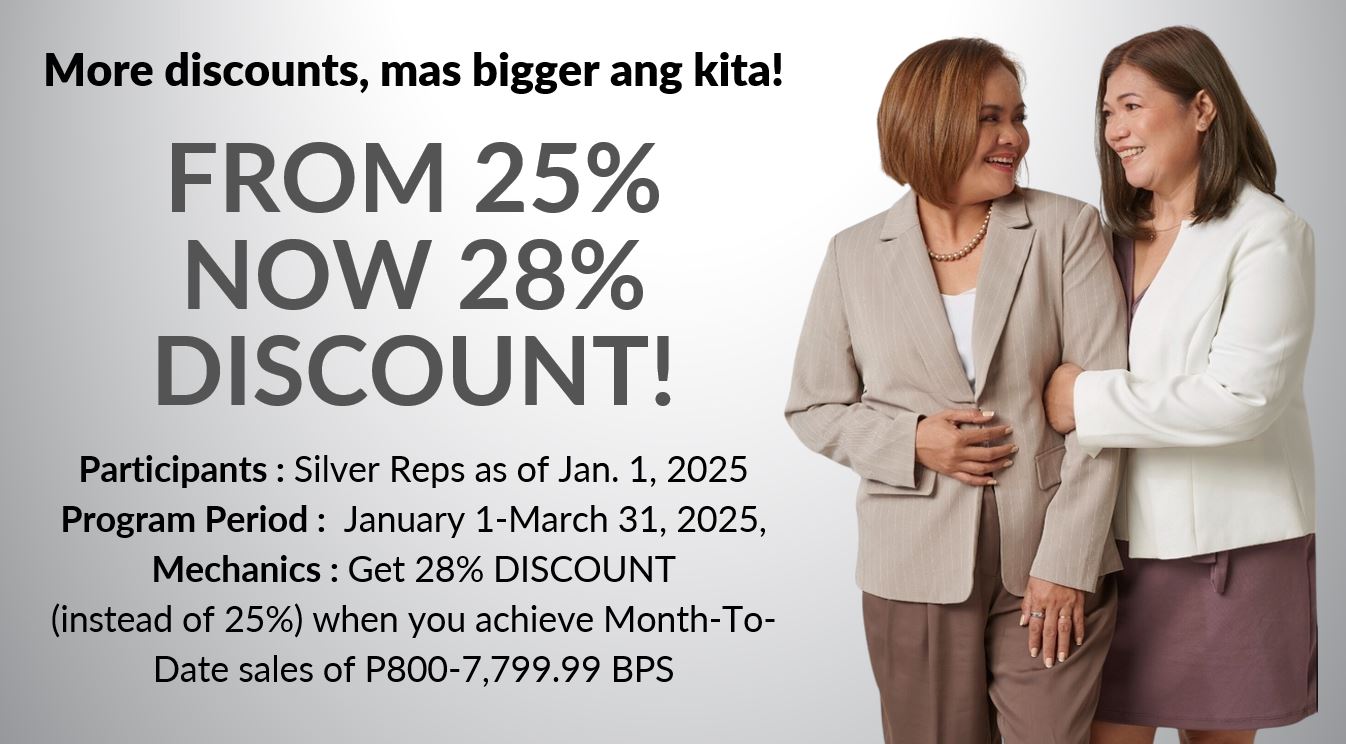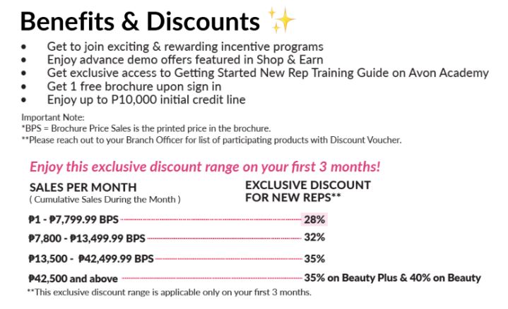 Makikita sa Avon Welcomes flyer na 25% ang New Rep discount, pero dahil gusto namin na mas mapaganda ang inyong Avon experience kaya we're giving 28% minimum discount starting 2025!