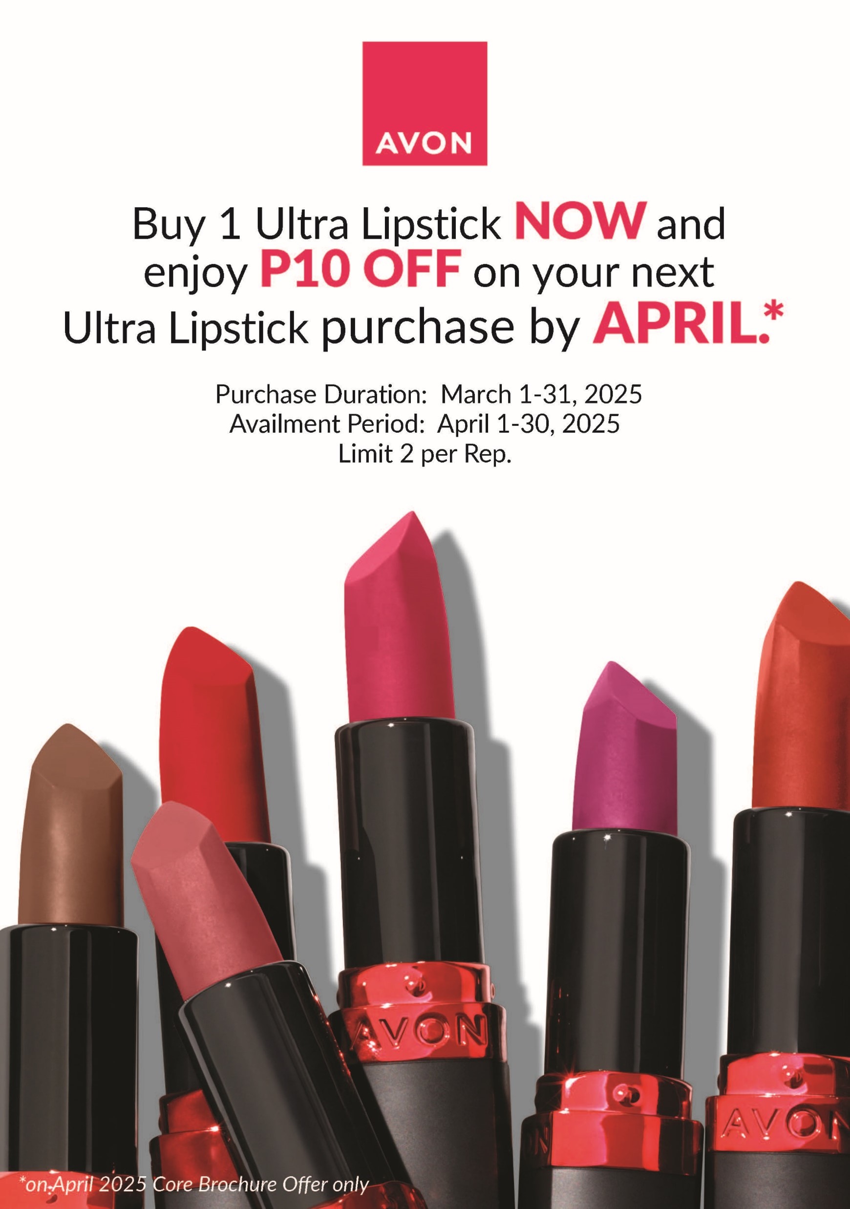 Buy 1 Ultra Lipstick from March 1-31 and enjoy P10 OFF on your next Ultra Lipstick purchase by APRIL.*