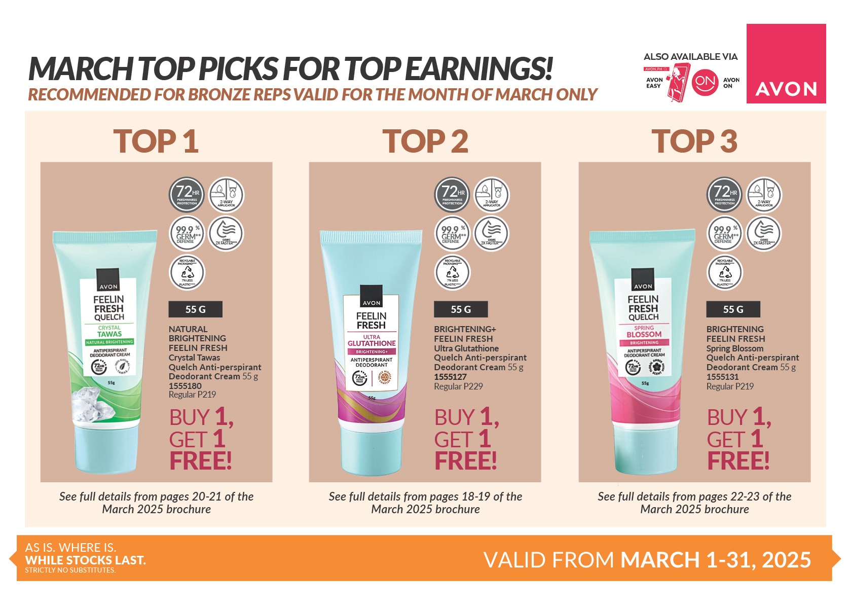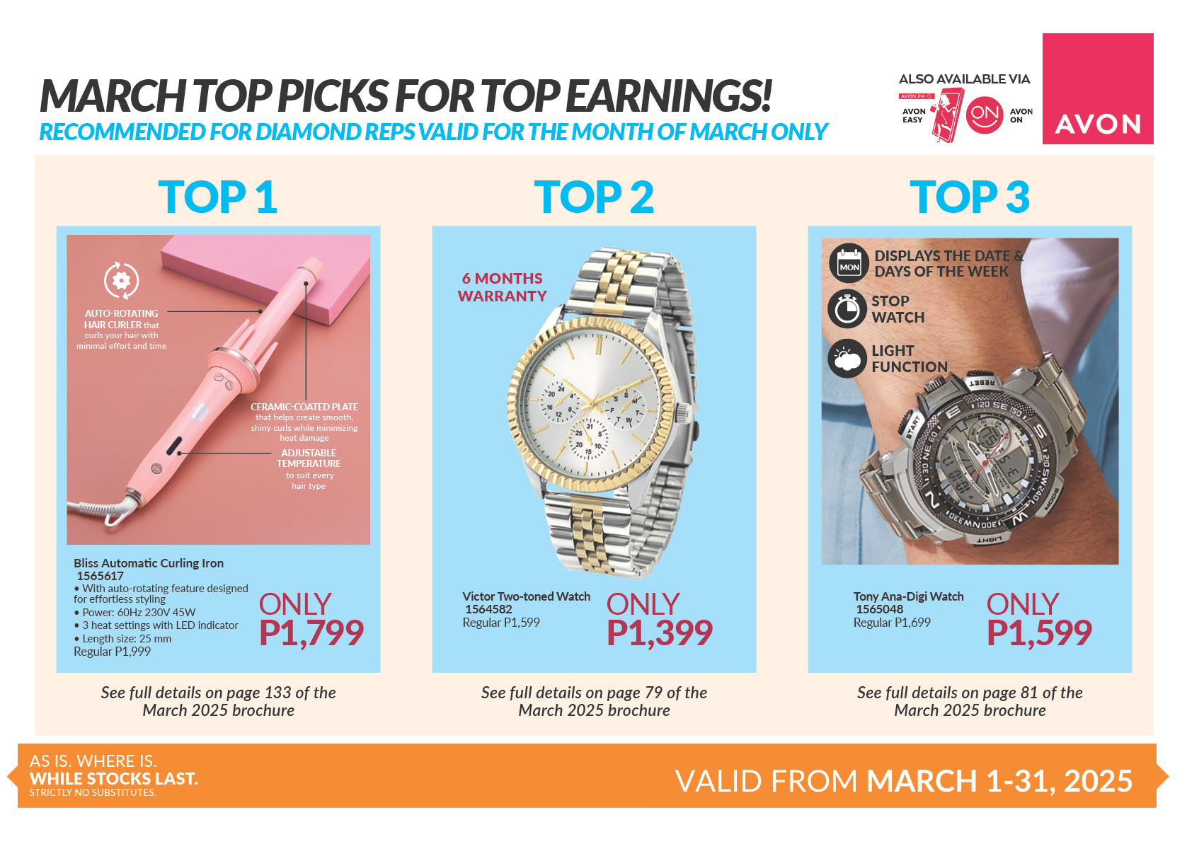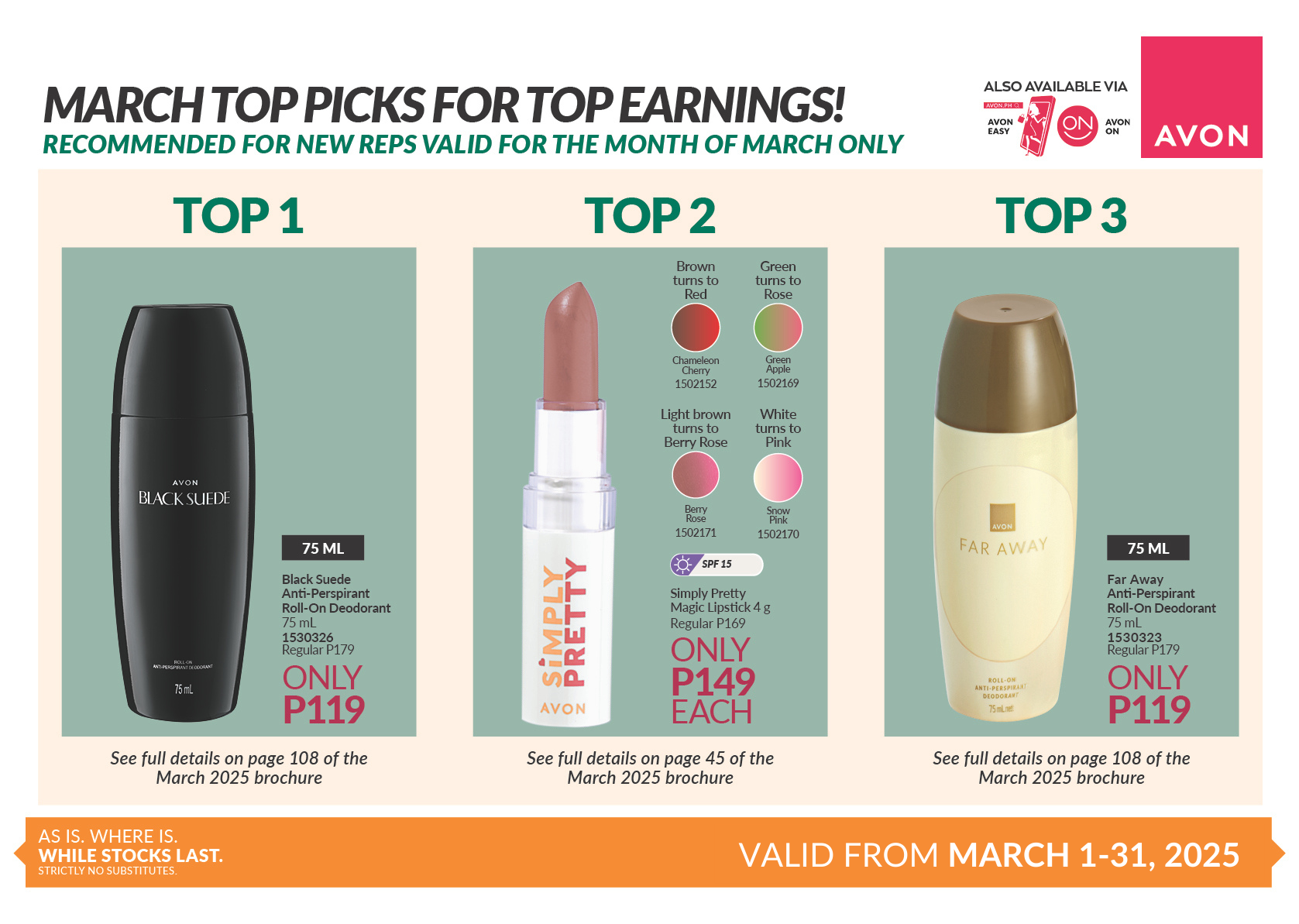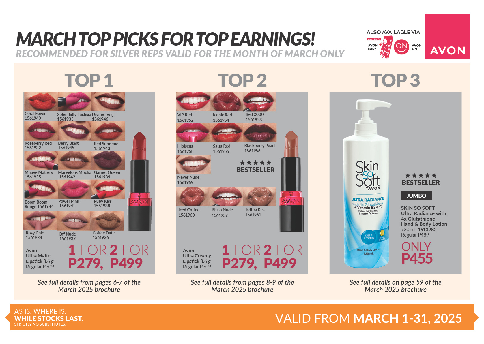 March Top Picks for Top Earnings recommended based on Avon Rewards Level