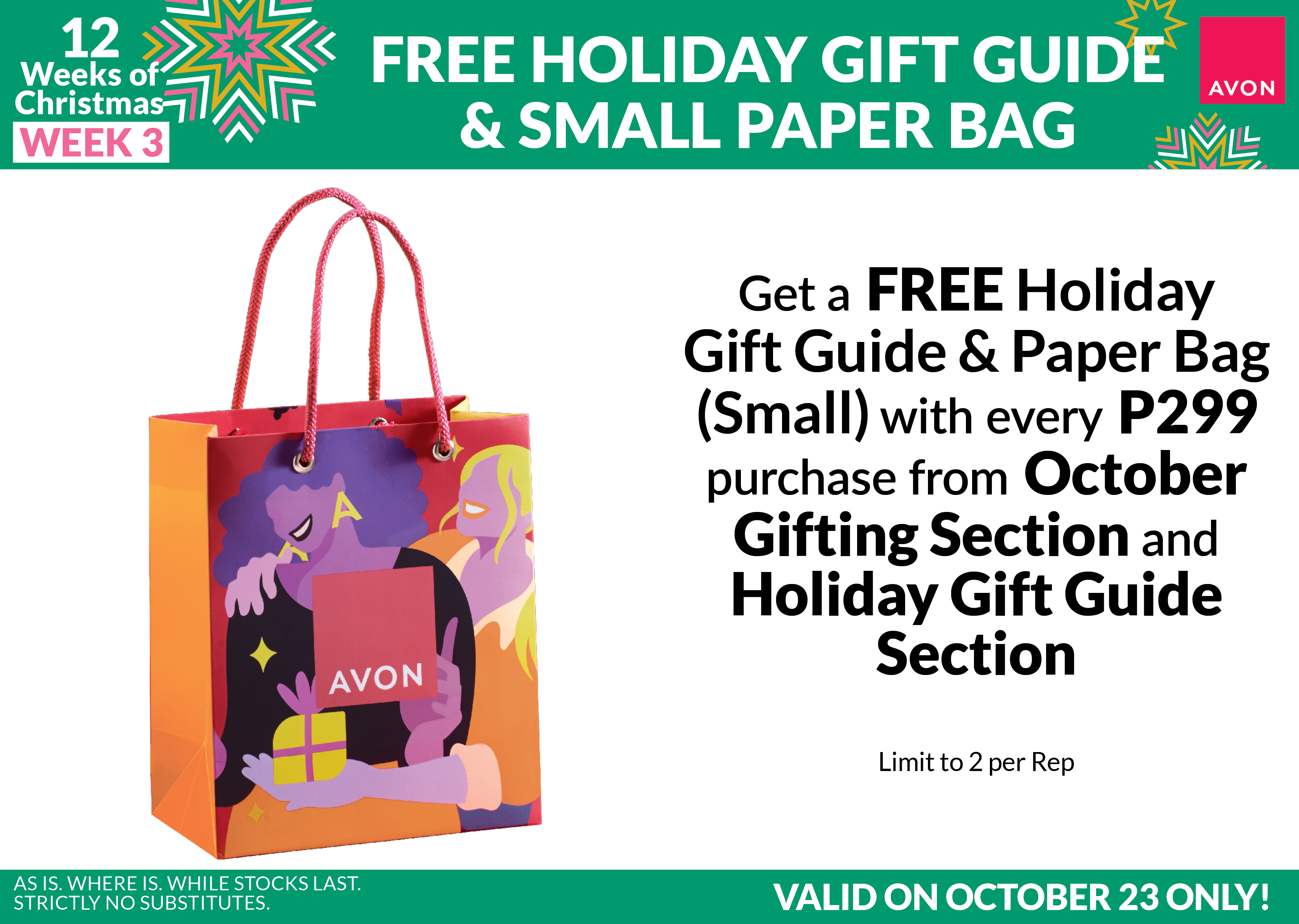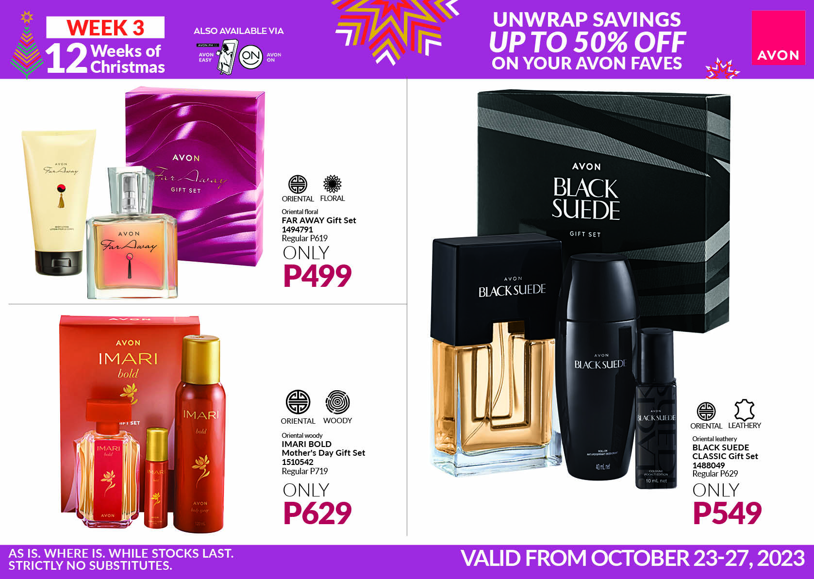 Avail the exciting OCTOBER TO REMEMBER Clearance Sale offers and premium in the branch or via Avon ON and Avon EASY!